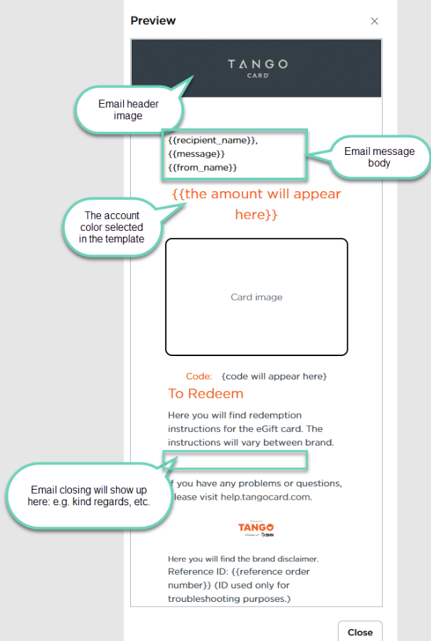 . Then include Tango supported body parameters, such as name, fromName, subject, etc. These tags are automatically replaced with actual values when the reward is sent via the Tango API or portal. See how to Create a new digital template.